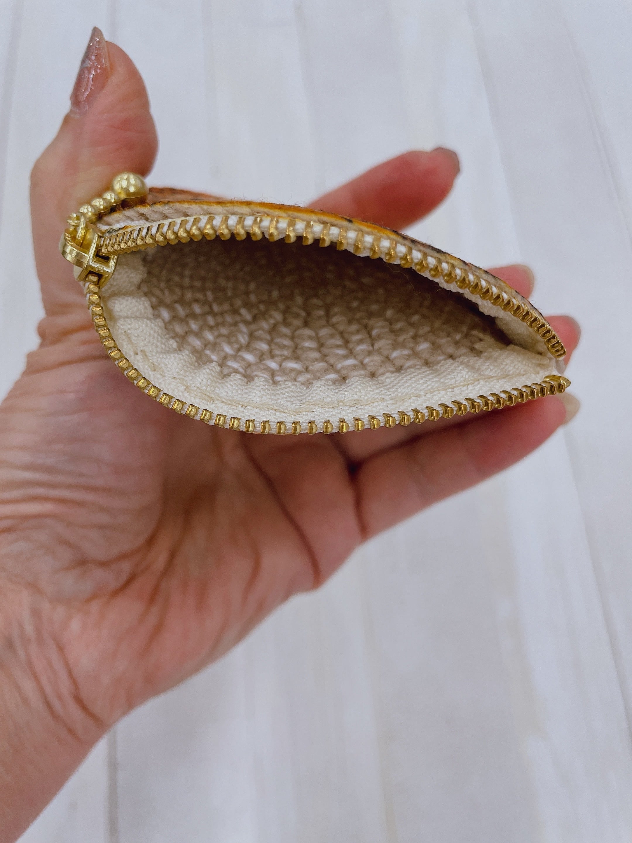 編んであるのに、まるで革などでできているような、しっかり感のあるコインケースです。